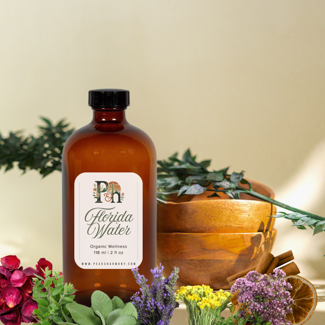 Our proprietary blend Scratch-Made Florida Water is a proprietary blend lovingly crafted in small batches by our certified herbalist and owner, Heather Peaks. Made from carefully selected botanicals, herbs, and citrus essences, this time-honored formula is infused with intention and respect for traditional practices. Each batch is thoughtfully prepared from scratch to cleanse, uplift, and restore energetic balance.