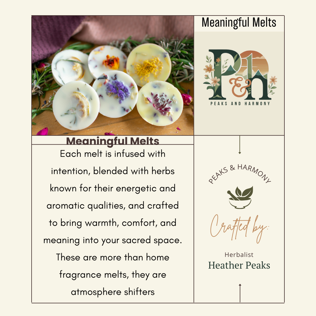 Meaning Melts are custom-made, small-batch herbal wax melts created with natural wax and thoughtfully selected botanicals to gently scent your home without harsh chemicals, synthetic fragrances, or toxins. Our natural soy wax is paraben free and ensures a cleaner burn in wax warmers making it safe for your health & pets unlike traditional petroleum based wax melts wax cubes