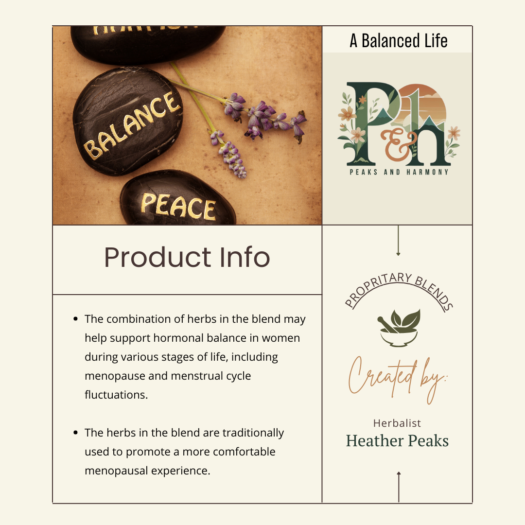 Supports hormone & moon cycle Changes associated with Menopause. A Balanced Life tincture helps the body find its natural rhythm during menopause. 2 FL oz