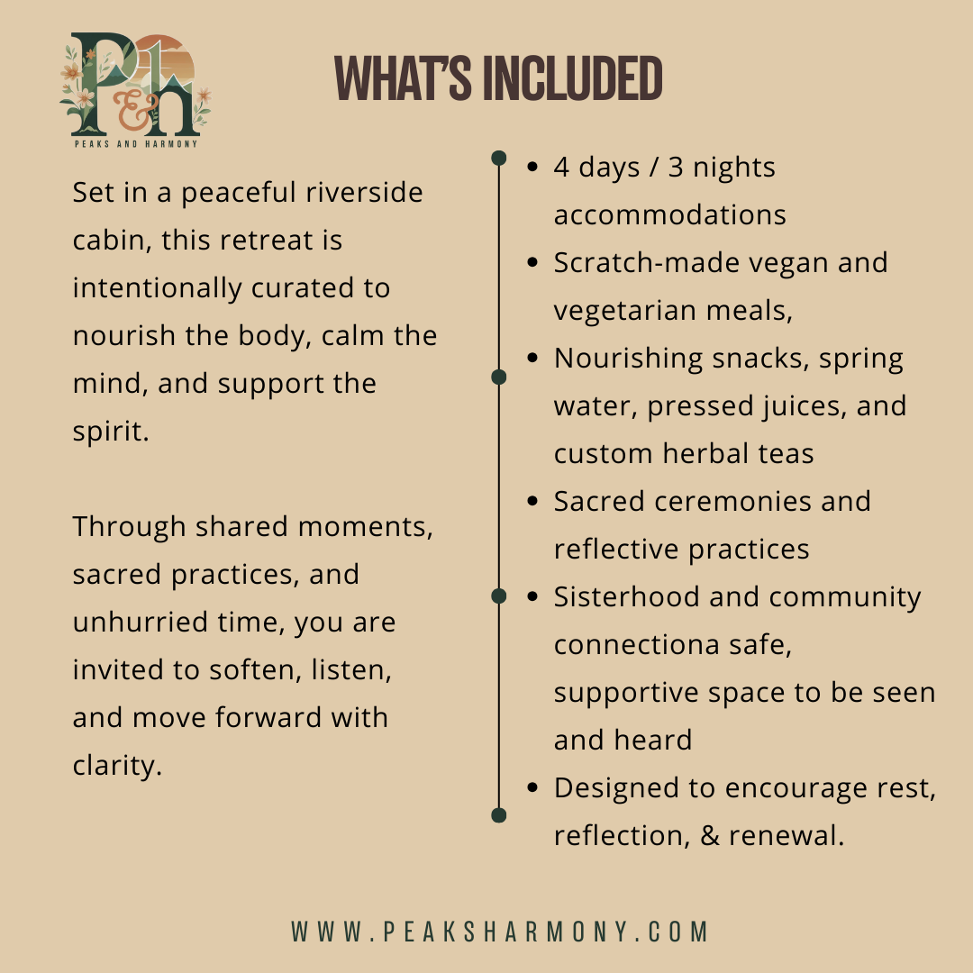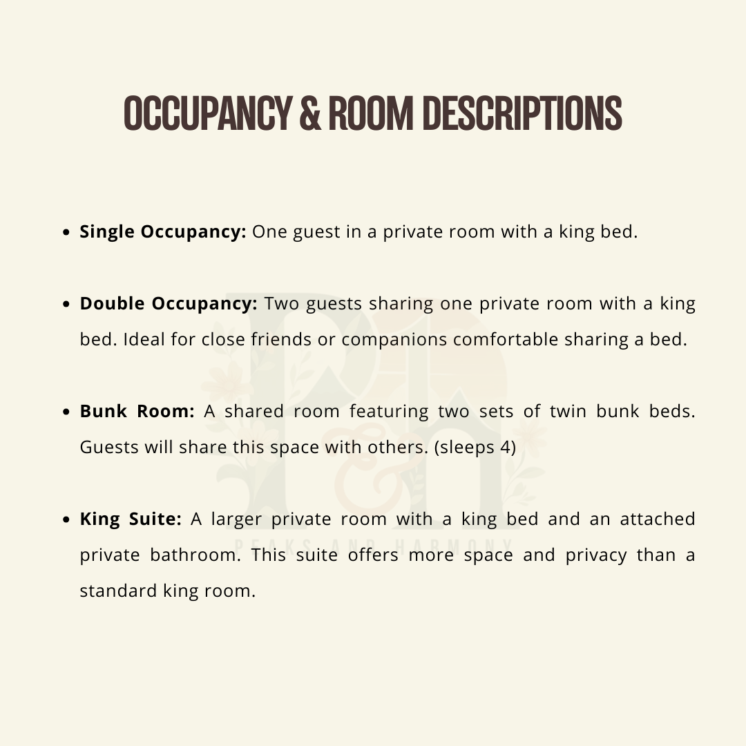 Please read: Peaks & Harmony Retreat Policy & payment Agreement