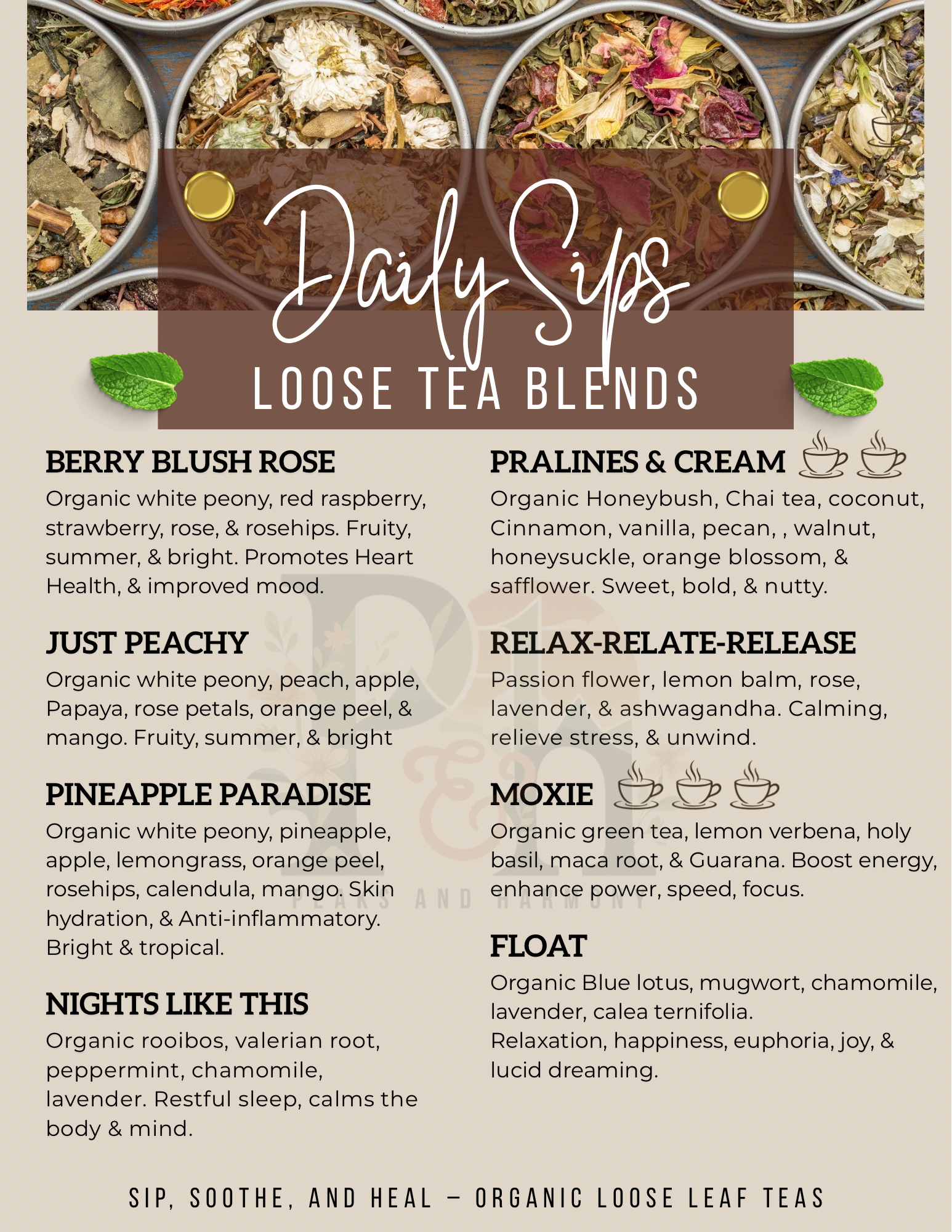 20 servings loose leaf tea blends.
